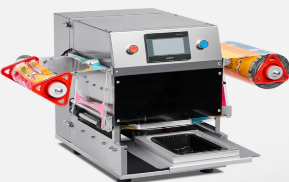 The machine automates the tray sealing process, reducing manual labor while maintaining consistent, tight seals that protect food from contamination and leaks.